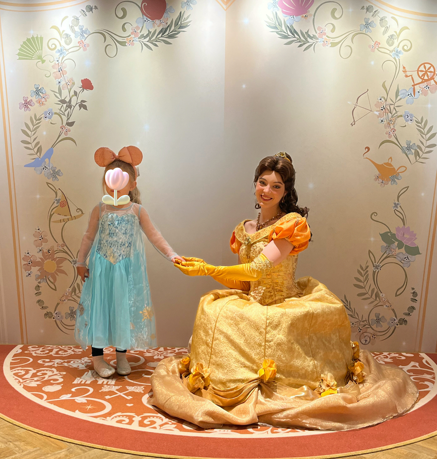 Po pierwsze – każdy z pokoi urządzony jest w motywie konkretnej księżniczki (więcej o tym dalej we wpisie). Bohaterki bajek można też spotkać w hotelowym lobby! Dzieci i dorośli – goście hotelu – mogą obejrzeć jeden z kilku występów, które odbywają się tu codziennie, i zrobić sobie zdjęcie z ukochaną bohaterką.